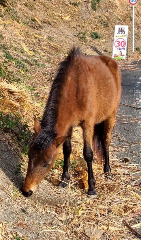 いろんな所でお食事中の御崎馬に会うことが出来ます。